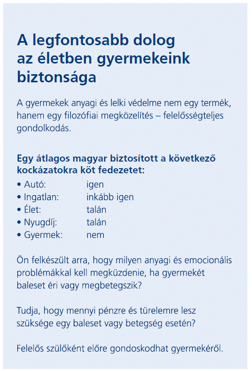 - Kórházi kezelés és műtét:** A jobb ellátás, megbízható orvos, külön szoba, finomabb ételek és a gyermeknek szánt apró ajándékok további költségeket jelenthetnek (kb. 100 000 Ft).